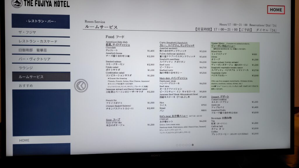 ・富士屋ホテルルームサービスのレビュー